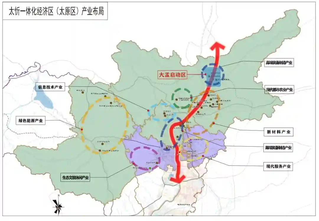 借助太忻一体化经济区建设机遇,太原市在新空间布局新产业,确立了七大产业发展方向——高端装备制造、新材料、信息技术、绿色能源、现代服务业、生态文旅休闲、现代都市农业,力图在北部打造高质量发展新引擎。